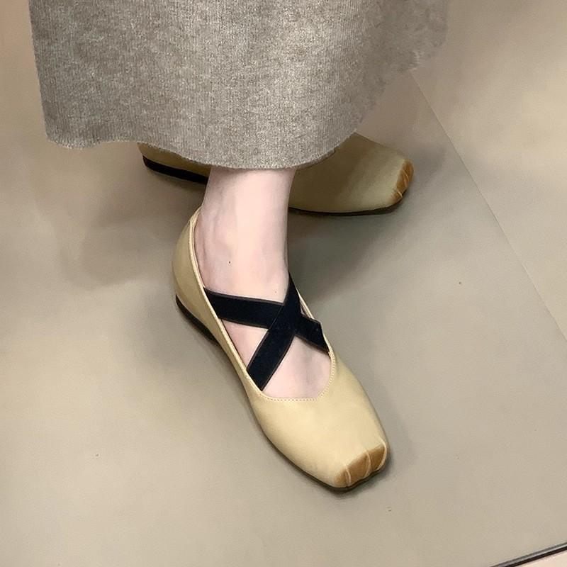 Chaussures de ballet rétro niche à brides croisées 2025 automne nouveau talon compensé intérieur bout carré décolleté Mary Jane chaussures simples femmes