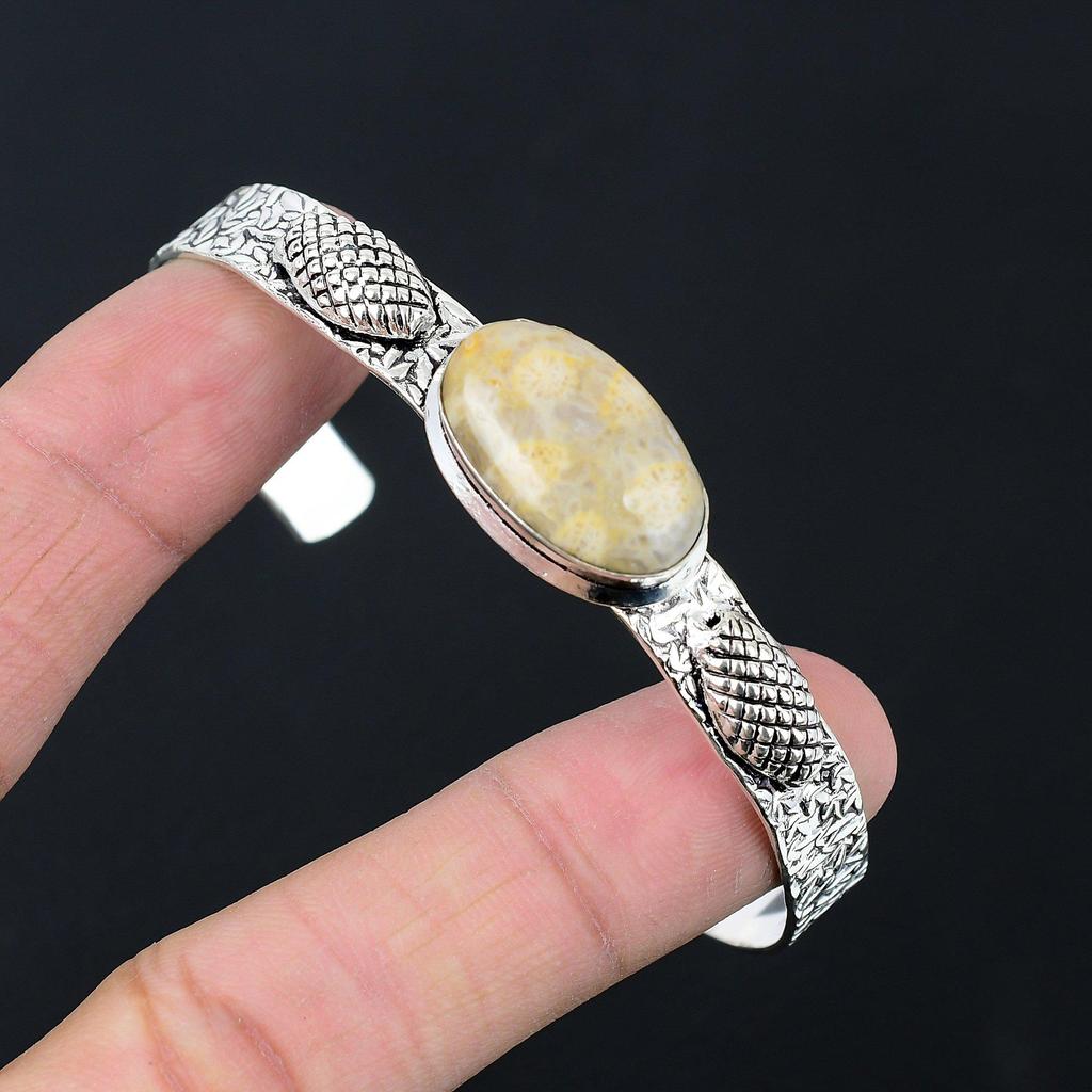 Sisters Day Sale Natural Fossil Coral Sterling Silver Trendy New Bangle Bracelet