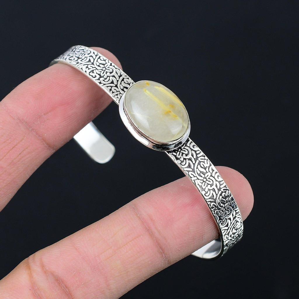 Sisters Day Deal 925 Silver Oval Golden Rutile Gemstone Wedding Birthday Bangle