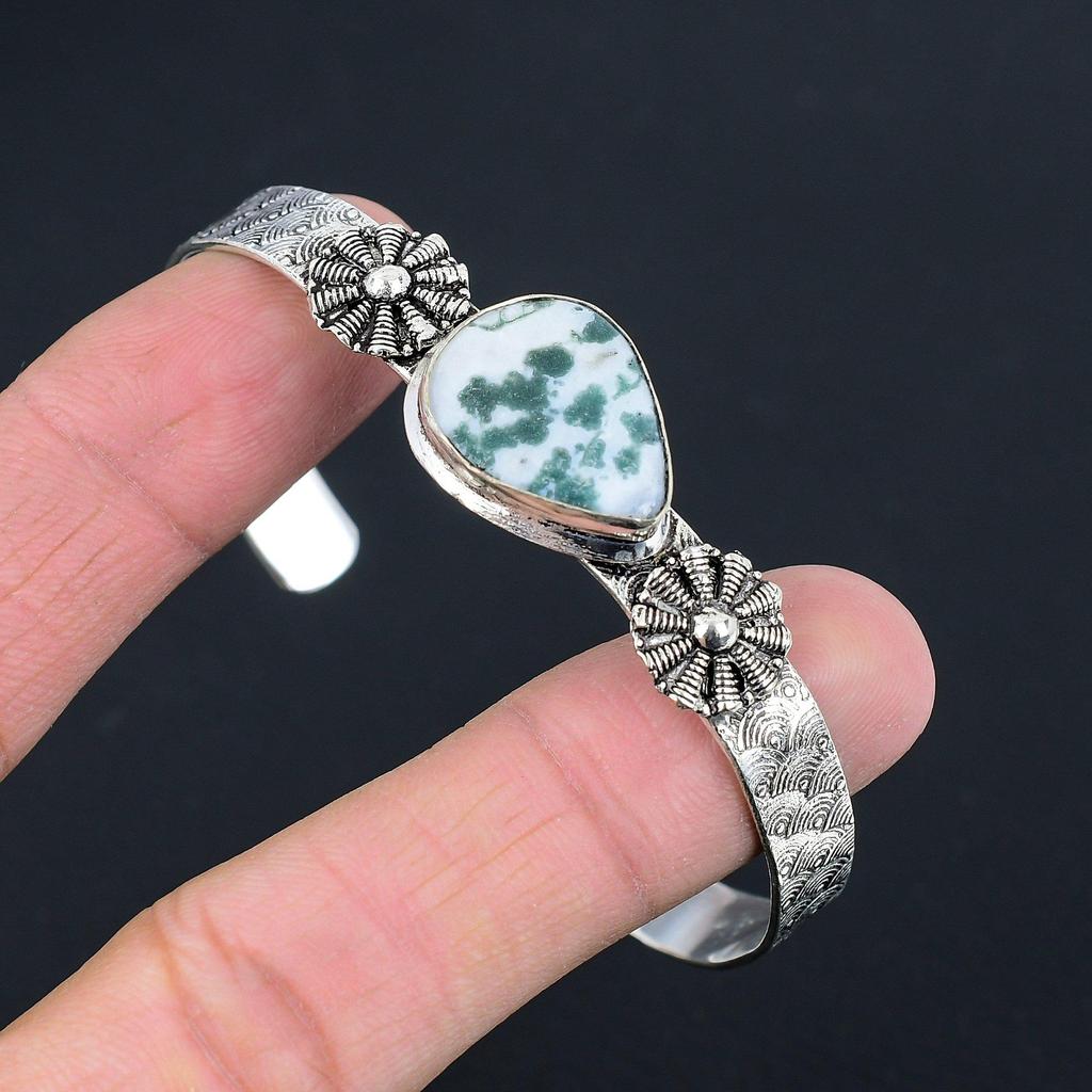 Sisters Day Sale Tree Agate Gemstone Art Deco Bangle Jewelry 925 Sterling Silver