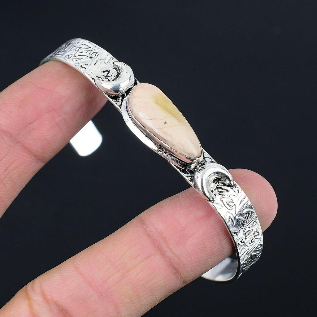 Pear Natural Imperial Jasper Sterling Silver Crescent Moon Wife Bangle Bracelet