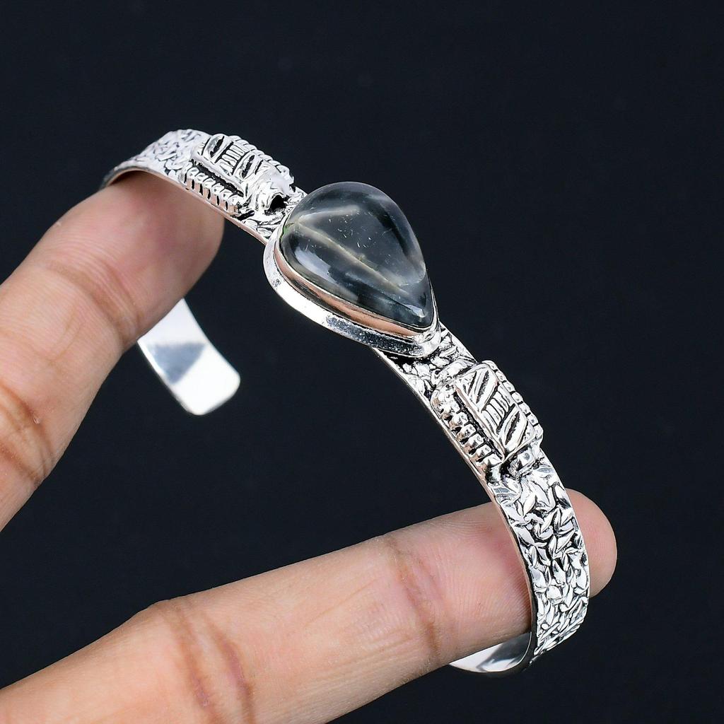 Vente de Pâques Argent Sterling 925 Poire Agate Fumé Naturelle Artisan Manchette Tendance
