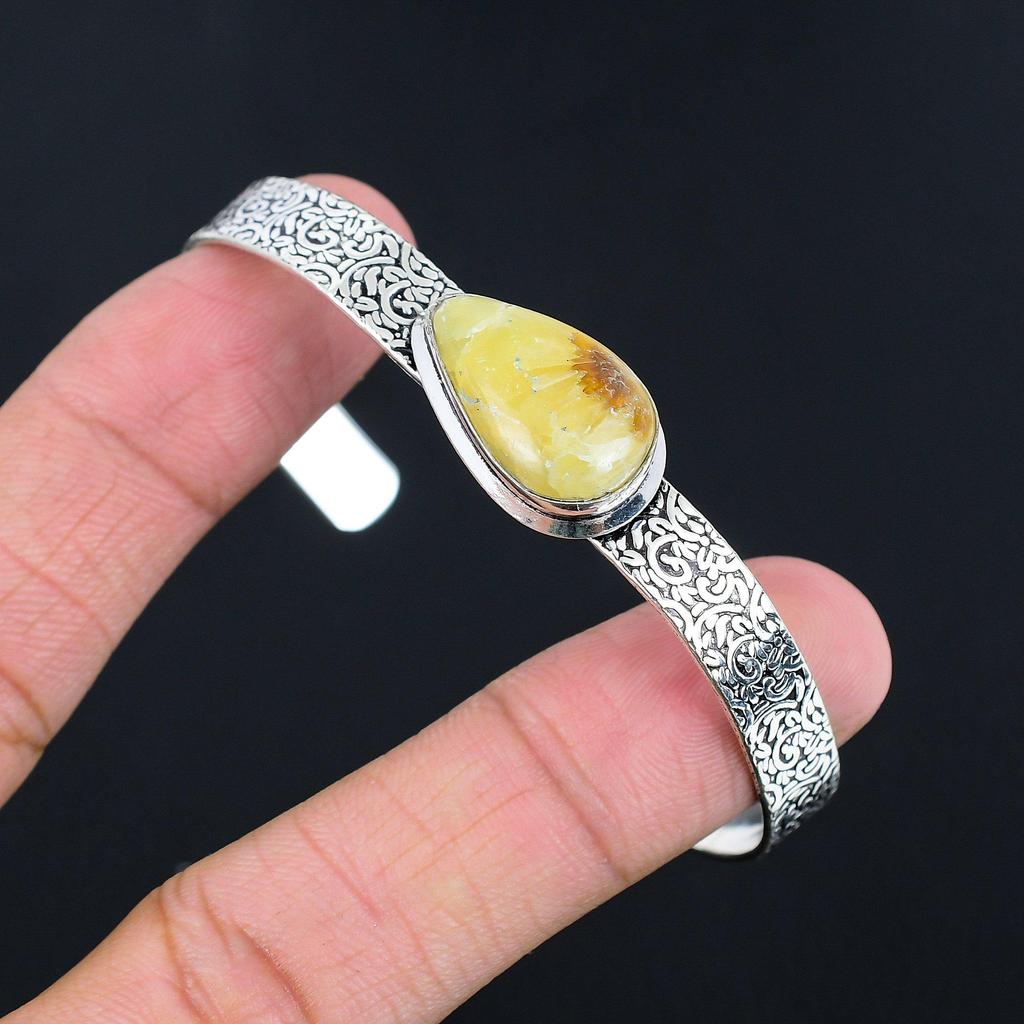 Natural Septarian Gemstone Bangle Yellow Adjustable 925 Sterling Silver Jewelry