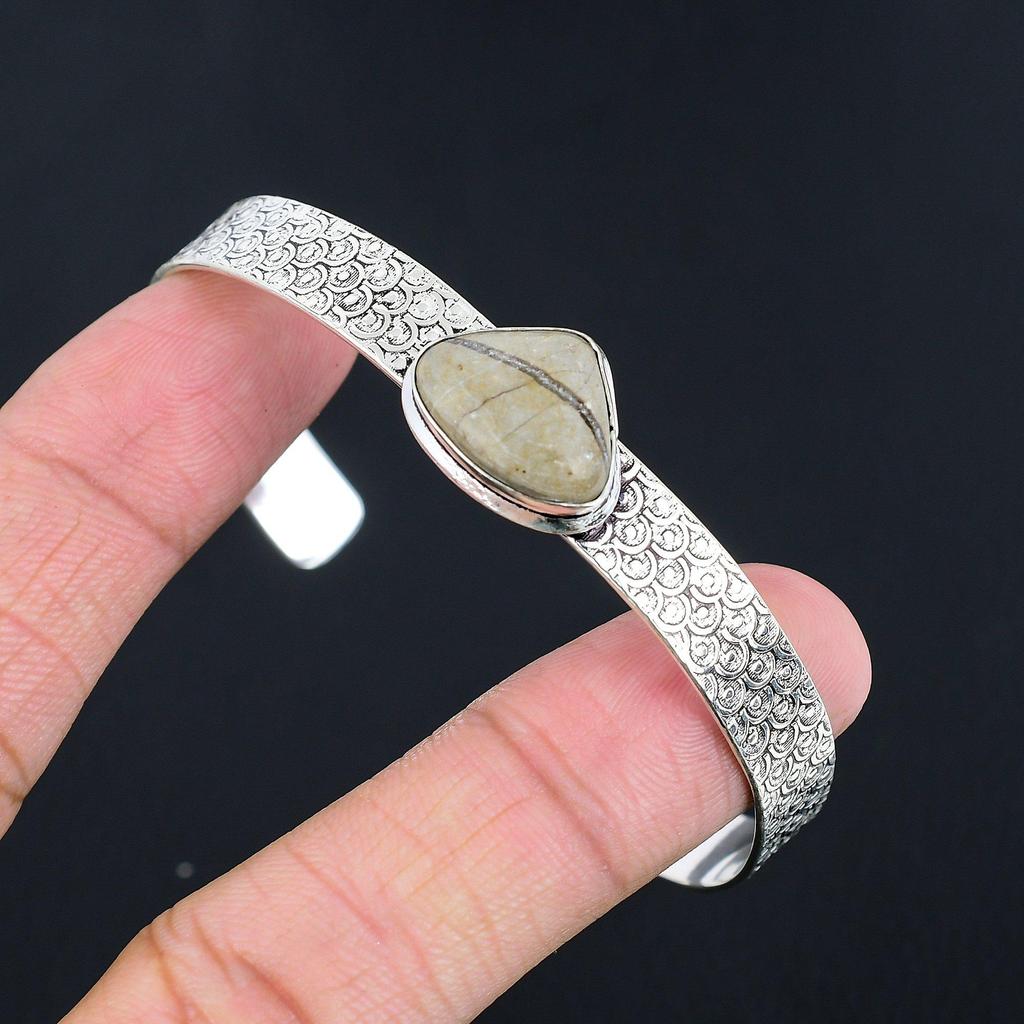 Memorial Day Sale Sterling Silver Septarian Stone Root Chakra Bangle Bracelet