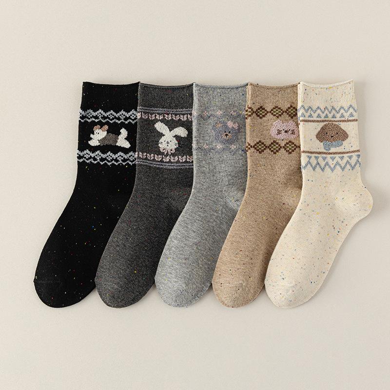 Dame Printemps et Automne Dessin Animé Mignon Animal Douce Idée Fil Bord Ourlet Vent Collège Chaussettes Tube Empilables