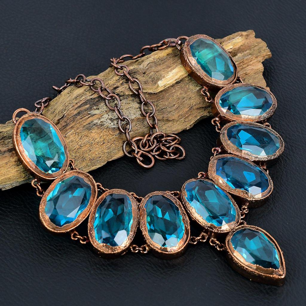 Collier Topaze Bleue Bijoux en Pierre Précieuse, Collier Cuivre Électroformé, Collier Chaîne Réglable Fait Main Cadeau Pour Femme Bijoux