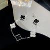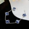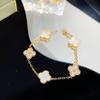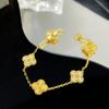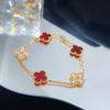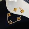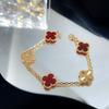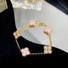 Bracelet Trèfle à Quatre Feuilles Version Haute Cinq Fleurs Calcédoine Violette Naturelle Gravé Laser CNC 18K Ne Se Décolore Pas Bracelet pour Dames