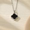 Collier Trèfle Style Élégance Simple Classique en Acier Titane pour Femmes - Portable des Deux Côtés avec Zircon Micro-Facetté pour Chaîne Ras du Cou Polyvalente