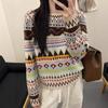 Pull Tricoté Rayé Artistique Rétro Lâche Automne Hiver avec Boucle Corne de Vache Pulls pour Femmes
