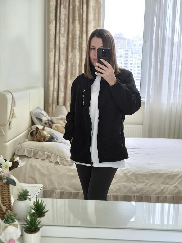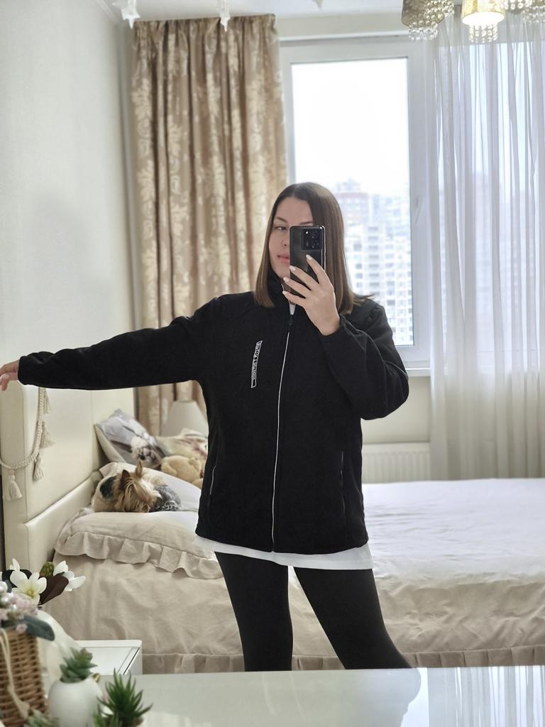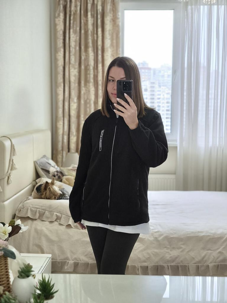 Veste polaire Très confortable, chaude, douce, agréable au toucher. Je porte la taille 5XL, elle est trop grande pour moi, surtout aux épaules, mais l'article taille petit. Mesures précises: Buste 112 cm Largeur d'épaule 46 cm Manche 59,5 cm Longueur 70 cm + col 8 cm. Je recommande 🤗