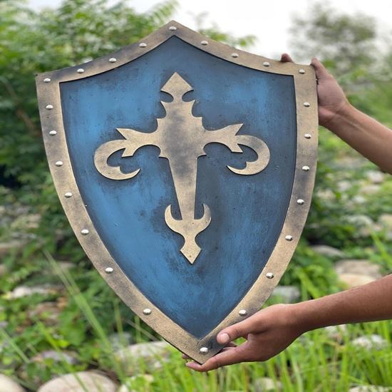 Bouclier de Templier, Bouclier de Chevalier Médiéval, Bouclier en Bois Bleu et Or, Bouclier de Croisé 28 Pouces, Accessoire de Bouclier LARP, Réplique de Bouclier de Cosplay, Décoration Médiévale Faite Main, Cadeau de Chevalier Templier, Bouclier de Bataille Fantastique, Bouclier en Bois Art Mural, Objet de Collection Bouclier Historique, Accessoire de Foire de la Renaissance, Accessoire de Costume de Chevalier.