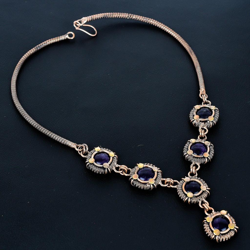 Amethyst Necklace, 999 Copper Wire Wrapped Adjustable Chain Necklace. Gift For Women Handmade Necklace Gemstone Jewelry