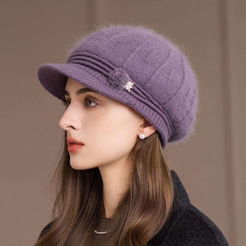 Chapeau pour femme Nouveau chapeau d'automne et d'hiver en laine Bonnet thermique Mère d'âge moyen et âgée Chapeau tricoté