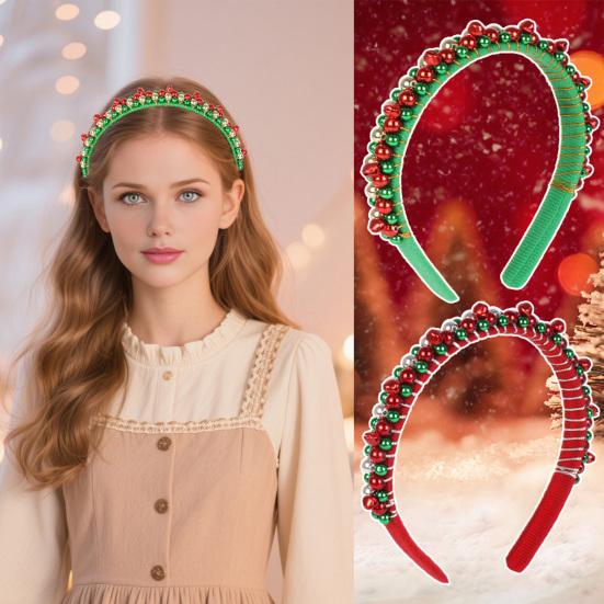 Christmas Headband Red Green Bell Decor Girls Headdress Holiday Season Party Hair