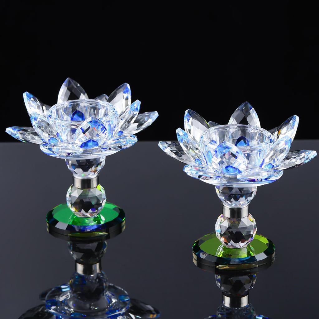 Porte-bougie Lotus en Cristal Qianwei, Ornement d'Autel Bouddhiste, Fleur de Lotus Artificielle, Rotation à 360°, Porte-bougie Coupe-vent, Hautement Translucide