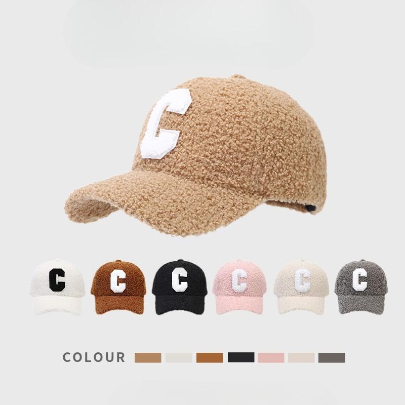 New Autumn and Winter Lamb Velvet Baseball Cap for Women Thickened and Warm Peaked Cap for Men Korean Style C Letter Casual All Match Hat