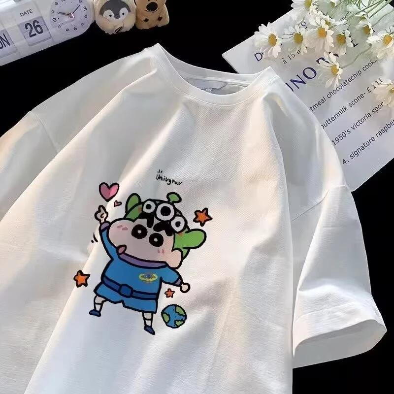 Crayon anime print loose 100% pure cotton short-sleeved men's breathable summer casual creative high-quality T-shirt