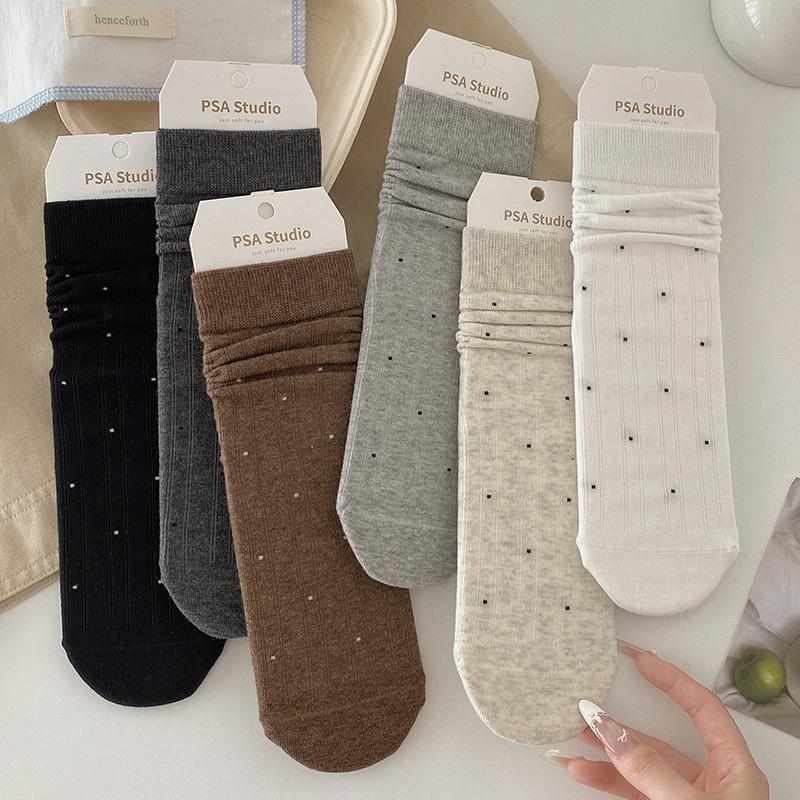 Chaussettes mi-mollet d'automne et d'hiver pour femmes à pois chaussettes pour femmes chaussettes en pile sans couture chaussettes en coton