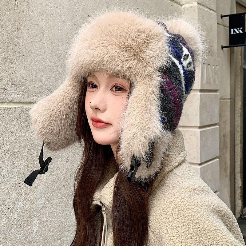 Bonnet Thermique Tricoté Couleur Tendance pour Femmes, Polaire Épaissi avec Protège-Oreilles, Bonnet Polaire