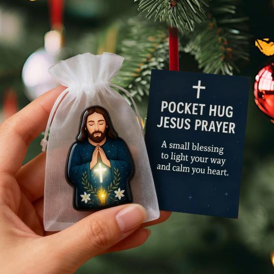 Câlin de poche Cadeau Jésus Bénédiction Jésus Prière Figurine avec carte Souvenir Câlin de poche chrétien Ornement Foi religieuse pour cadeaux chrétiens
