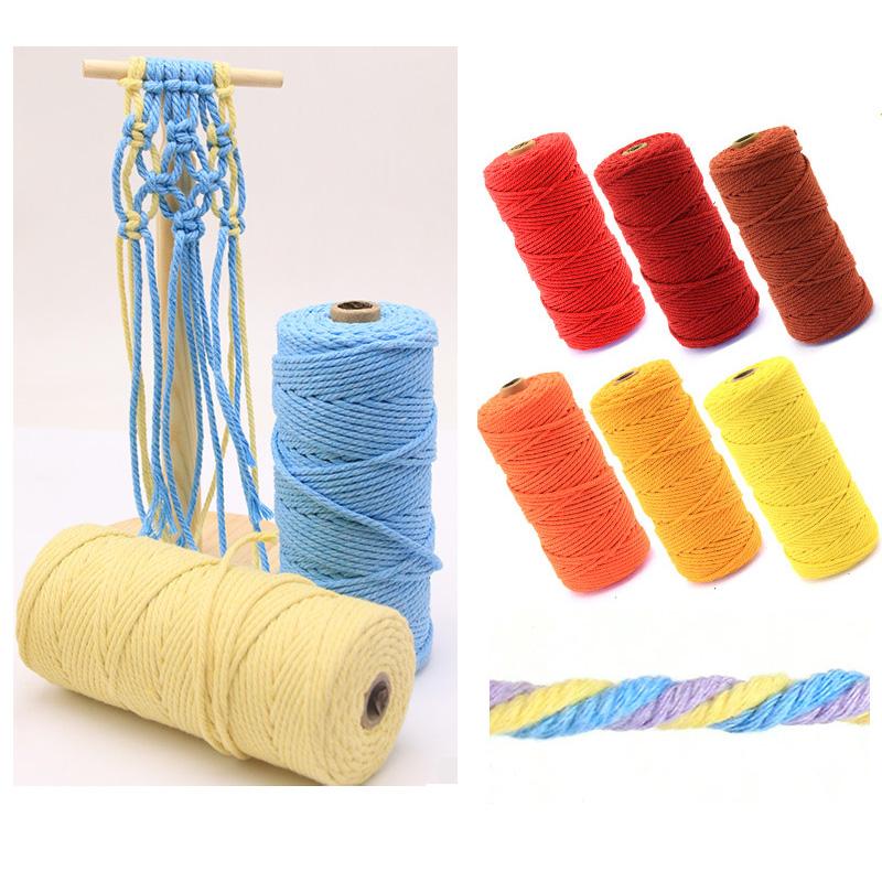 100M/Rouleau Fourniture Décoration Maison Corde Coton Macramé Colorée Tricotée à la Main 3mm Projets DIY Emballage Cadeau Naturel