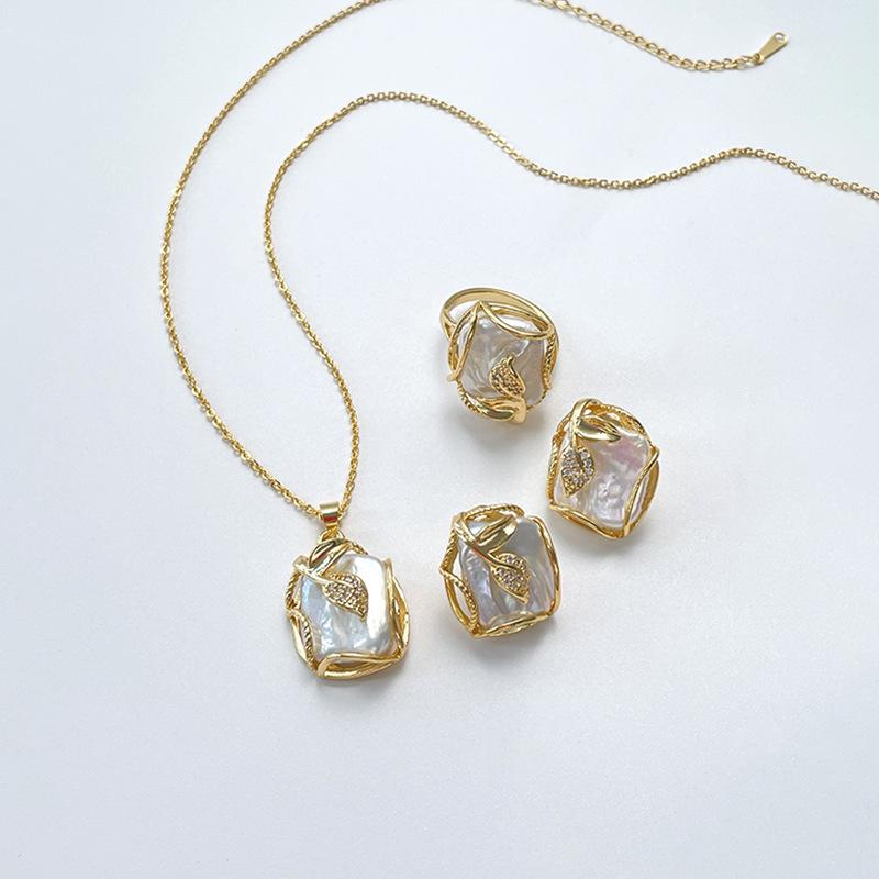 Fashion Leaf Baroque Pearl Necklace Earings Freshwater Pearl Jewelry Sets For Women Freshwater Pearl Necklace Pearl Earrings