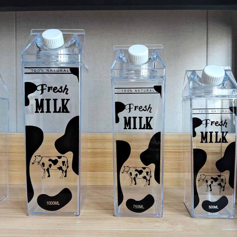 Bouteille de Lait 500/750/1000 ml Boîte à Eau Carrée Tasse à Café Jus de Thé Transparente Stockage du Lait Pour Sports de Plein Air Camping Gym