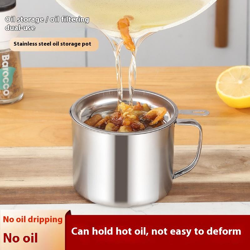 Pot Conteneur Pichet de Rangement en Acier Inoxydable avec Filtre avec Base Pot à Huile de Cuisson pour Outils Ménagers de Cuisine