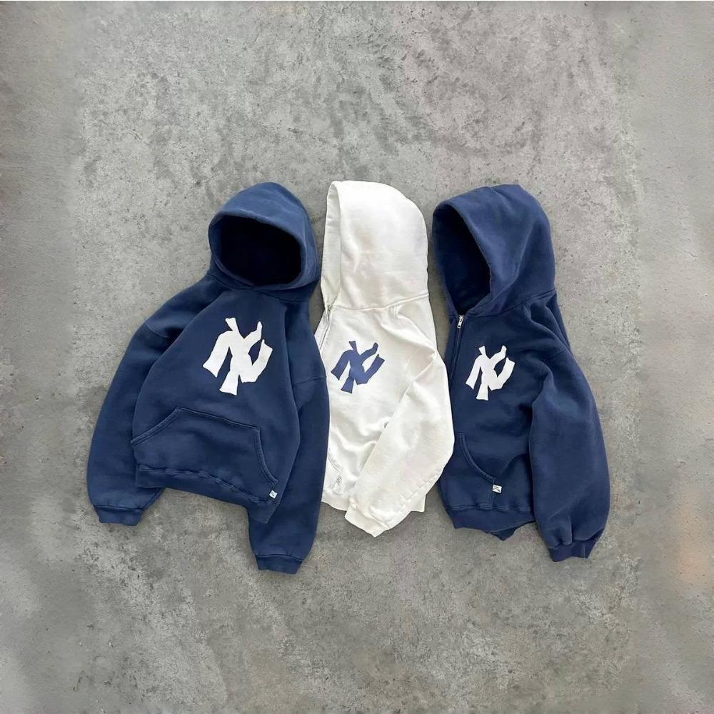 ZYLLO Harajuku Pull Rétro à Imprimé Nouveau Motif Fleur Ouverte Pull à Capuche Y2K Street Hip-Hop Décontracté Ample Sweat-shirt Haut de Couple