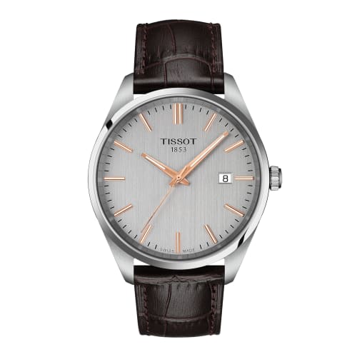 Montre Homme Tissot PR100 avec Bracelet en Cuir et Cadran Argenté, Importée Officiellement, Modèle T1504101603100