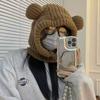 Chapeau Écharpe Intégré Oreilles d'Ours Chapeau d'Hiver Polyvalent Protège-Oreilles Cagoule Chapeau en Laine Tricoté Tendance
