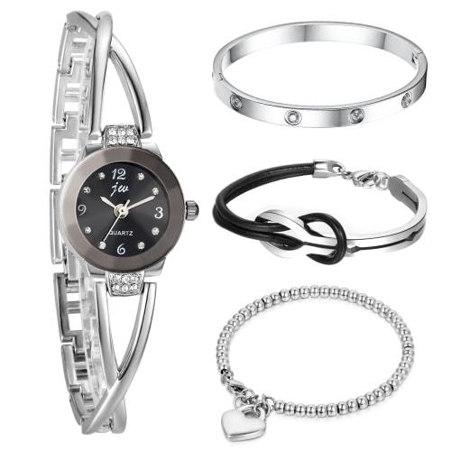 Women's Cute Stainless Steel Bangle Watch: Silver Infinity Symbol Heart Bracelet, Waterproof Quartz Movement, 4-Piece Set - Perfect Christmas or Valen