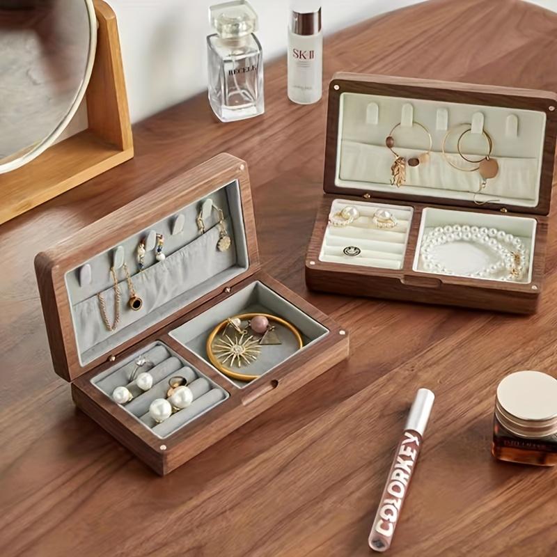 Boîte à bijoux haut de gamme en bois massif Noyer noir bois rétro petite fine portable boîte de rangement pour bagues bijoux en or, Boîtes à bijoux