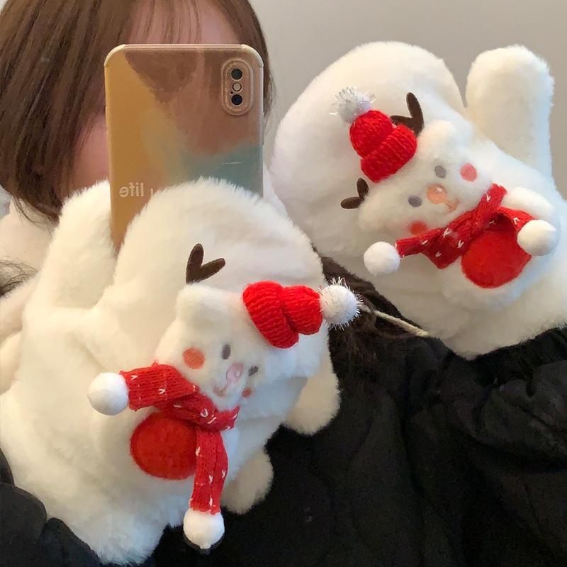 Mignon bonhomme de neige de Noël gants en peluche automne et hiver chauds moelleux froid cou nouvel écharpe
