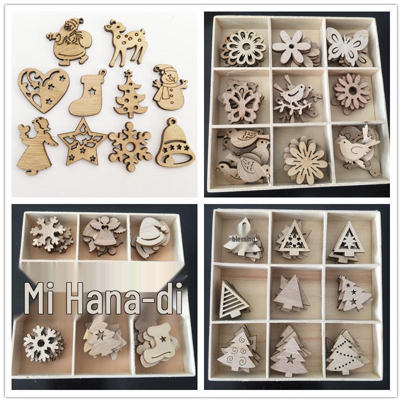 Ornements de Noël Vintage Écologiques - Design Créatif en Copeaux de Bois Dessinés