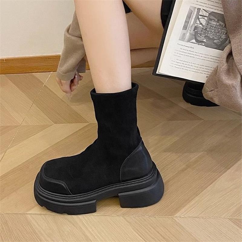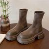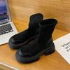 Style britannique rétro montre les pieds, bottines Martin à petite plateforme pour femmes, automne et hiver 2025 nouvelles bottines courtes à manches et talon épais rehaussant pour femmes