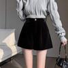 Black gold velvet shorts women's autumn and winter velvet small man wearing high waist and thin loose wide leg a word bottoming boots