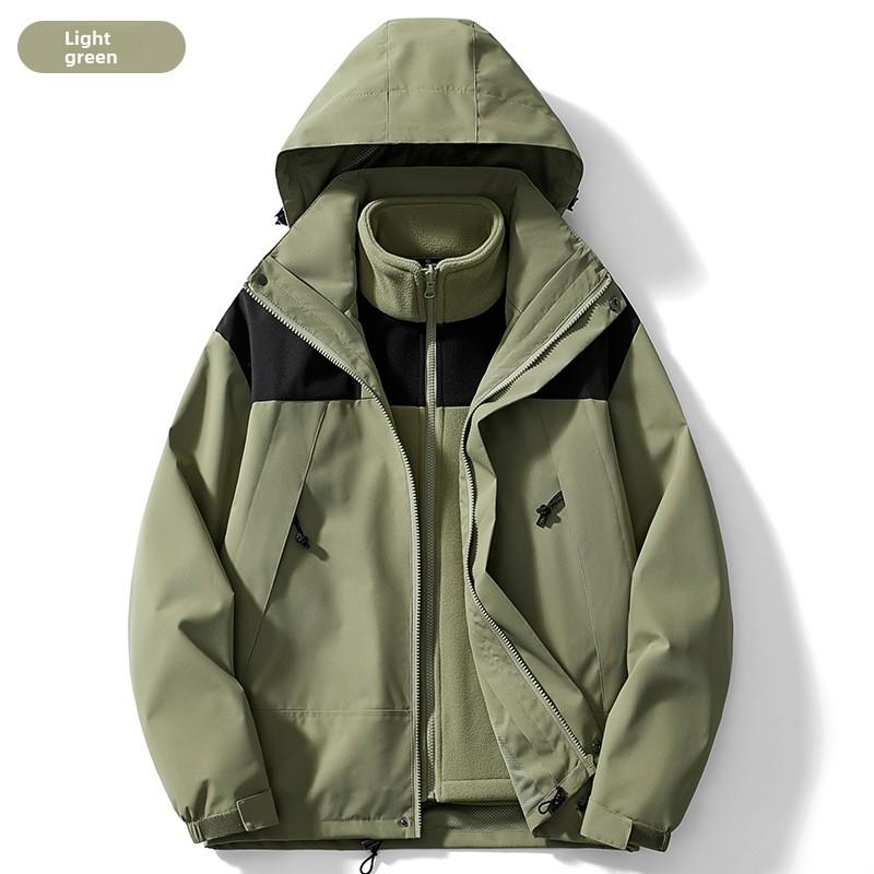 Autumn Winter Three-in-One Jacket Color Matching Unisex Thickened Two-Piece Detachable Mountaineering Windproof Coat for Men