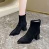 Hiver Femmes Bottines à Talons Épais Bout Pointu Mordern Bottines Courtes Street Style Fête Stripper Chaussures Féminines