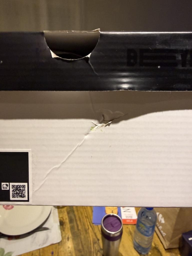 Boîte endommagé et qualité médiocre au bout de 1 entraînement en intérieur la semelle est déjà usé