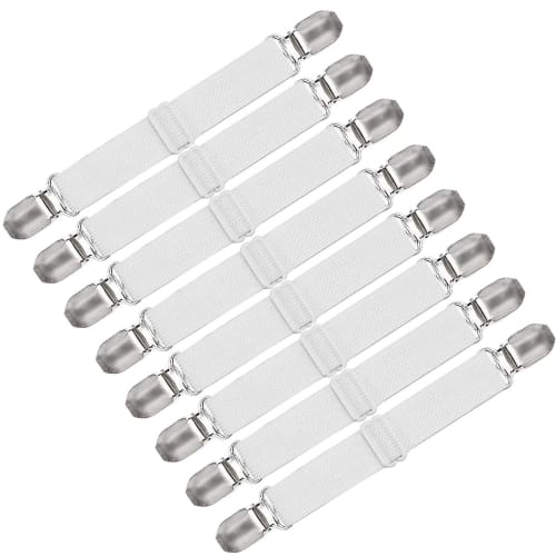 QBeau Comforter Clips, Bed Sheet Anti-Slip Clips, Elastic Bands, Adjustable Corner Clips, White, Set of 8