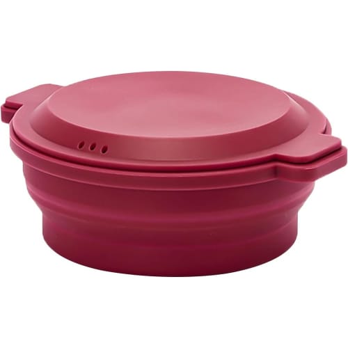 SG-04 tone Round Silicone Steamer with Lid that Transforms into a Plate, Microwave Cooking, Steamer, Recipe Included, Foldable, Dishwasher Safe