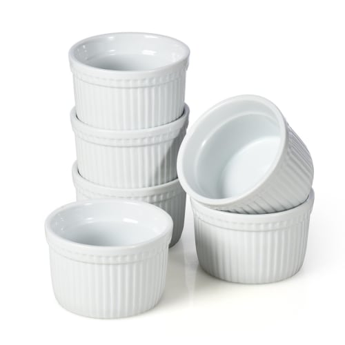 WishDeco Cocotte Souffl? Dishes, Set of 6, 200ml Capacity, Heat-Resistant, White, Approx. 9cm Diameter x 5.7cm Height, Microwave, Dishwasher, and Oven