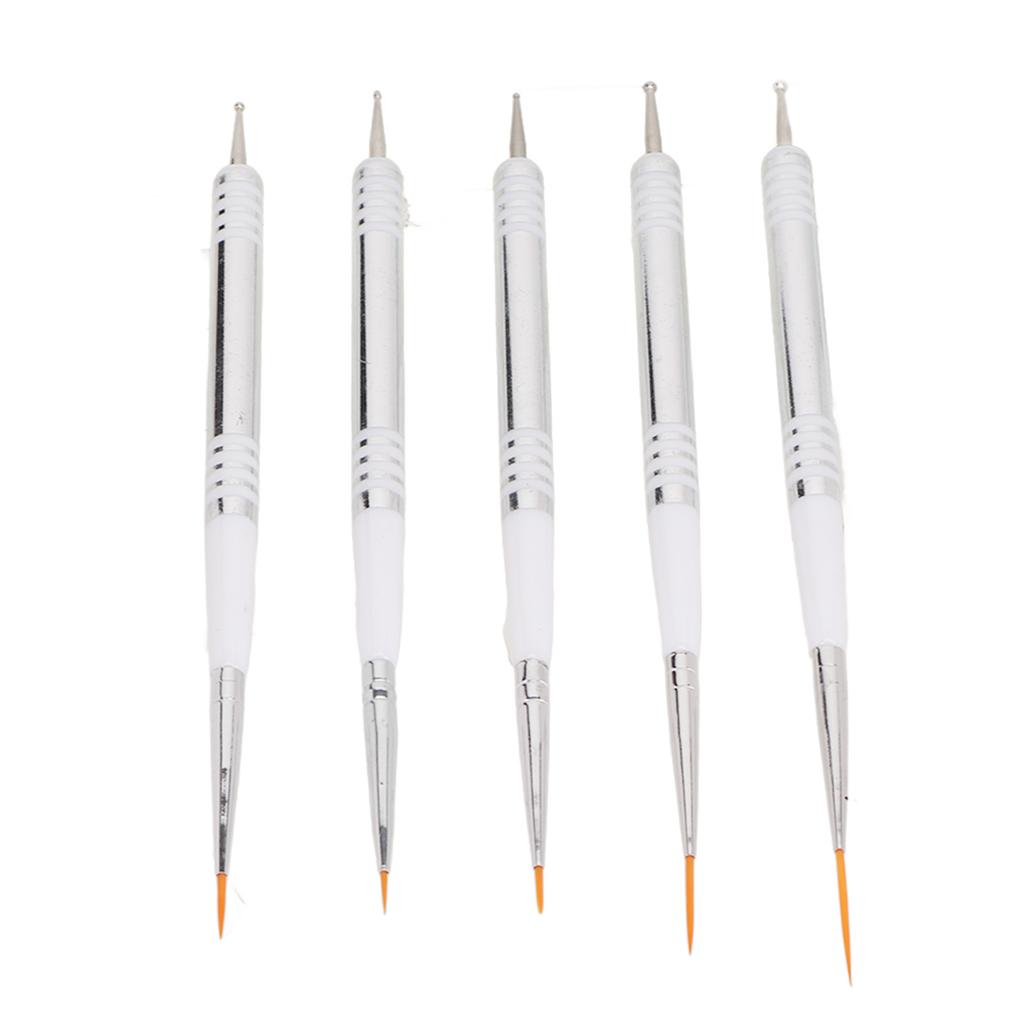 5 Pcs Nail Art Brushes Double Ended Detail Drawing Fine Tip Nail Dotting Pens for Home DIY Salon Manicure