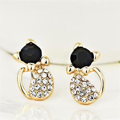 1 Paire Boucles d'Oreilles Puces Forme Chats Mignons Strass Bijou Charme pour Fête Club