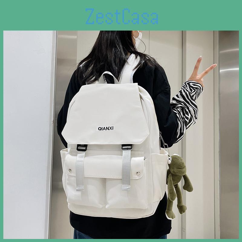 women's school backpack, laptop backpack for students, casual travel backpack, large capacity double shoulder bag, unisex nylon backpack, 15-inch computer bag, minimalist university backpack, embroidered letter backpack