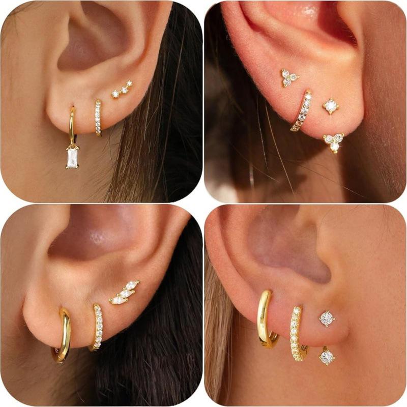 Boucles d'oreilles à clous en zircon - Ensemble tendance multi-piercing pour femmes