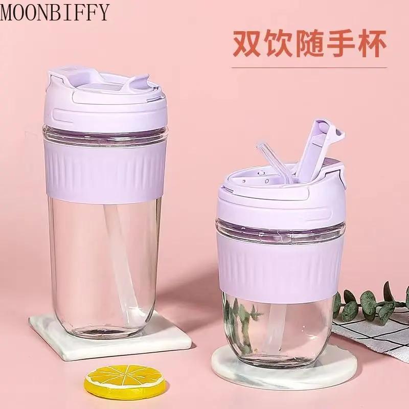 Tasse à eau en verre Tasse à thé portable Tasse à lait et café Tasses cadeaux Tasse à boisson en verre mignonne pour femme avec couvercle et paille Tasses à eau à double paroi