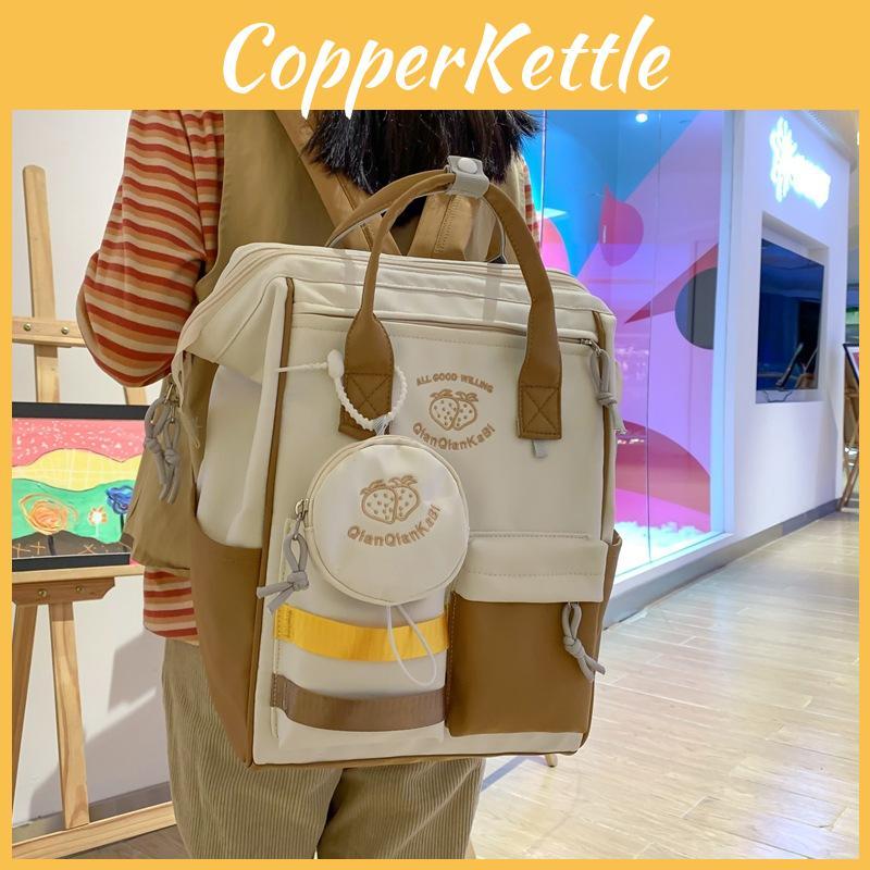 And Letter Strawberry Pattern Casual Nylon Backpack For Girls School Travel Use