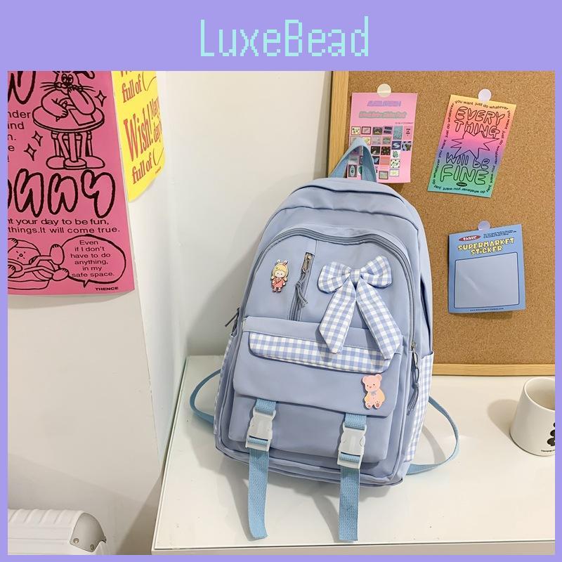 Checkered Cute Bow Decoration For Student Leisure Backpacks For Use Daily